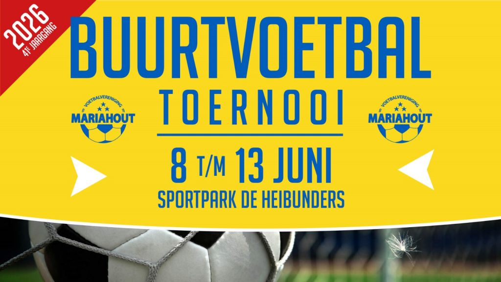 Het buurtvoetbal van 2026 wordt georganiseerd van 8 tm 13 juni. Dus zet dit alvast in je agenda want dit mag je natuurlijk niet missen. Ook worden deze week de kinderen niet vergeten die zich weer in gaan zetten voor het penalty schieten.