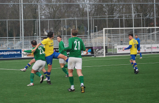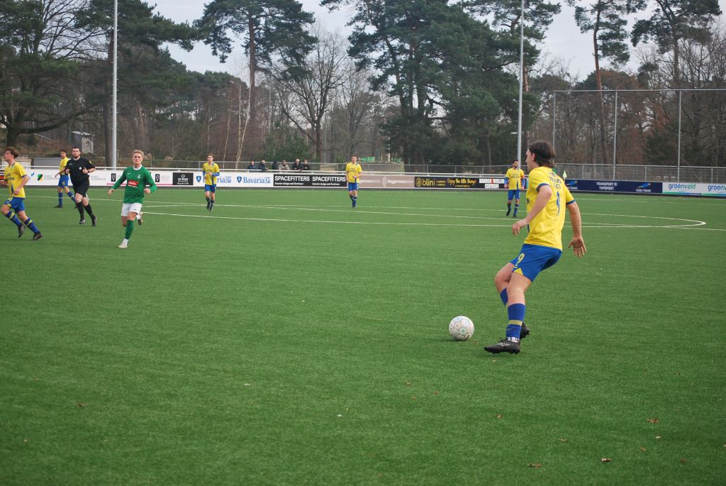 Mariahout begon feller aan de wedstrijd en had hierdoor de eerste helft een veldoverwicht. Venlo kreeg nog wel de eerste kansen, uit een corner kopte Noud van Bommel over en uit een vrije trap kopte Juul Jacobs naast. Daarna nam Mariahout het initiatief over, Joep van Hoof krulde eerst een hoekschop op de lat, en legde bij de volgende corner de bal op het hoofd van Luciano Deben die de bal rakelings langs het doel kopte. Schoten van Tim Barten en Pepijn Vroomans verdwenen ook aan de verkeerde kant van de paal. Halverwege de eerste helft kwam Mariahout verdiend op voorsprong: een vrije trap van Tim Barten werd eerst nog door een verdediger weg gekopt, maar daarna door David van Rossum met een volley in het doel geschoten: 0-1. Mariahout bleef aanvallen, en 10 minuten voor rust gaf Tim Barten een diepe bal op Haike van der Burgt. De verdediger van Venlo tastte mis, waardoor Haike alleen op het doel kon gaan en de bal beheerst met een lage schuiver binnen kon schieten: 0-2.